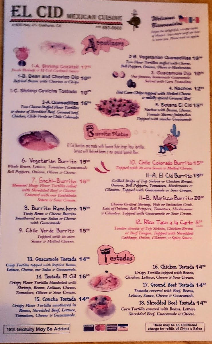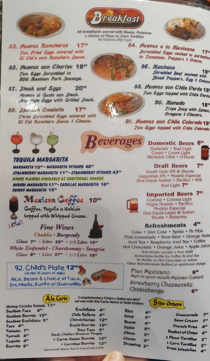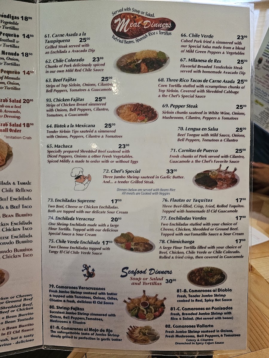 El Cid offers a menu that embraces the warm, familiar flavors of traditional Mexican cooking in a casual setting. The selection feels approachable, with hearty main dishes and comforting sides that suit a relaxed meal any time of day. Whether you're stopping by for a satisfying lunch, a laid-back dinner, or a simple snack, the menu balances classic favorites with thoughtful regional touches.